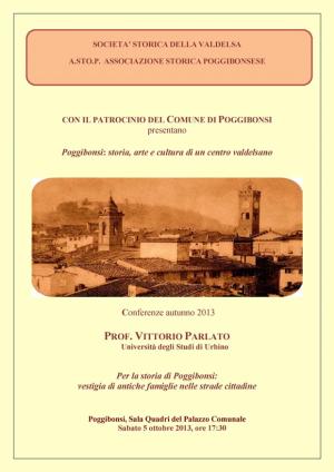 Conferenze autunno 2013 Prof. VITTORIO PARLATO (Università degli Studi di Urbino) Per la storia di Poggibonsi: vestigia di antiche famiglie nelle strade cittadine